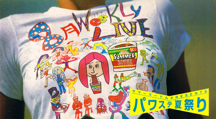 たしかぴあの雑誌広告だったと思います。パワステ夏祭りは新宿のライブハウス日清パワーステーションで催されていた夏向きのイベントで、詳細を読むとこの年の目玉は元ジャックスの早川義夫だったようです。夏向きですね。イラストがプリントされたTシャツを女の子に着せて接写するというアイデアも、躊躇なく夏の開放感を感じさせてくれます。本当に夏がきたーって感じしますよね。残念ながらパワーステーションは98年に閉鎖されました。日清食品ホームページ