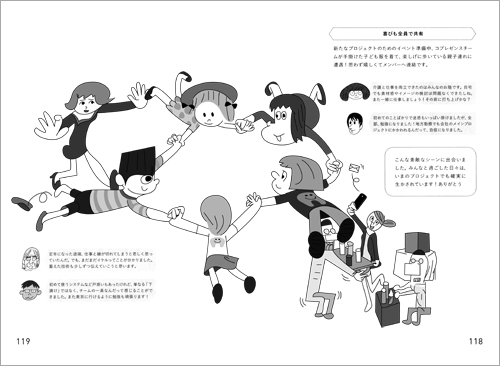 この本で著者の池田晃一さんは、未来の理想的な働くかたちの一つとして「コプレゼンスワーク」というアイデアを紹介しています。本の中ほど30ページを割いて、子供服づくりという具体的なプロジェクトを通し分かりやすくこれを解説してくれます。主人公のママさんOLをはじめ、リタイアした伝説の縫製職人、タイで働く青年工場長といった人たちがチームをつくって、各々の生活に合わせた就労時間でプロジェクトの各要所に関わり、効率を目指すだけでなく働きやすい環境を創りながら、楽しくこれを達成してゆく様子を描いています。こんなふうに働けたら人生意味あるかもって思わせてくれるので、詳しくは本を読んでくださいませ。