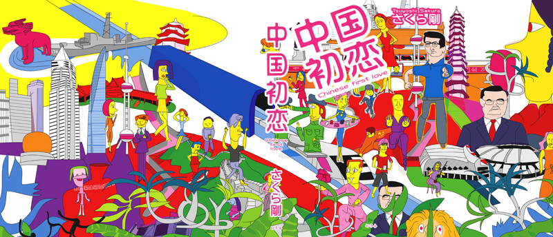 書評ではないので絵について二三。全体的には中国を活写してます。天安門、太極拳、上海タワー、胡錦濤、飲茶、文革、紅衛兵、張作霖爆殺、長城、二胡、ミサイル駆逐艦、最新の高速鉄道やスタジアム、その他諸々、ざっくばらんに抽象化をほどこしたこれらのアイテムは、うろ覚えで描いた場合とほぼ大差がないものになりました。色の方は何となく赤、いや紅かな、それと黄色。この組み合わせがやっぱり中国で、もちろん国旗の色組からの引用です。様々な媒体を通して植え付けられる、記憶と予想の入り交じったイメージの混合そのものが俗なる現中国ではないでしょうか。いま考えてみるとパンダがいませんね。