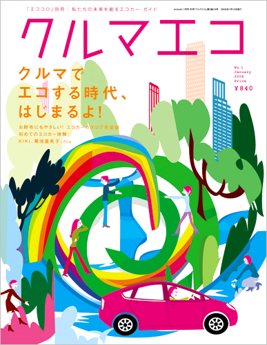 ということで今日発売のecocoroの別冊「クルマエコ」というムックの表紙にまた虹を描きました。本の中面ではこの表紙絵の一部分が、空や木や水の境目とは関係なく切取られ再利用されています。