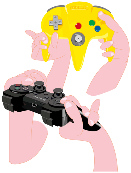 かつてない繁忙をきわめた二ヶ月を過ごし、やっとのこと普段の生活に復帰できたという感じがしてます。で、とりあえずなんですが少し前に描いたコントローラの絵をアップしました。ここにも描いたNINTENDO64のコントローラがとても好きで、発売当時色違いで四つ買ったんですが、中でもこの黄色が色といい艶といい最高で、それ以後ここまでいい感じの黄色い物体には出会ったことがありません。無理に形容すれば「美味しい」あるいは「美味しそうな」黄色です。