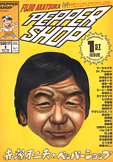 フリーペーパーだったPEPPER SHOPが雑誌としてリニューアルした第1号で、編集長兼アートディレクターを古賀学さんが継続してやっております。これが「赤塚不二夫のペッパーショップ」と銘打たれ、表紙につらなるマージナルな面々が、赤塚不二夫に思いの丈を捧げるトリビュート版という内容でした。今改めて読むと、数々の貴重な情報からその当時の盛り上りぶりが偲ばれます。
