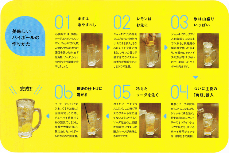 どうもハイボールはトリスバー、ニッカバー、オーシャンズバーといった専門店でウィスキーを安く楽しく衛生的に飲むために考えられた方法のようですね。初期もっともポピュラーだったのがトリスを炭酸で割ったトリハイでしたが、まもなく日本では家での晩酌でウィスキーを嗜むようになり徐々に高級嗜好になり、飲み方も衛生的になった氷や水でロックや水割りを飲むようになったようです。しかしその後ワインや焼酎などがたくさんのお酒が出てきて消費者の嗜好が多様化し83年以降ウィスキーの出荷は20年間右肩下がりに落ち込みました。この現状を何とかしようと考えたサントリーが地道なキャンペーンの積み重ねで、様々なウィスキーを使用した炭酸割りを復活させ、ここにきてのハイボールブームとなったそうです。こうしたキャンペーの成果もありますが、もともとハイボールには「炭酸割りを試されていないウイスキーはまだまだあるぞ」というノビシロがあったんじゃないかと思います。
